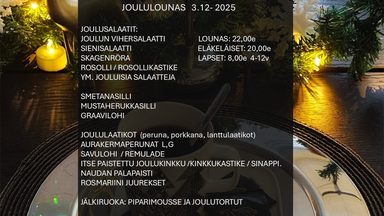 Lounas klo: 10,00-15,00